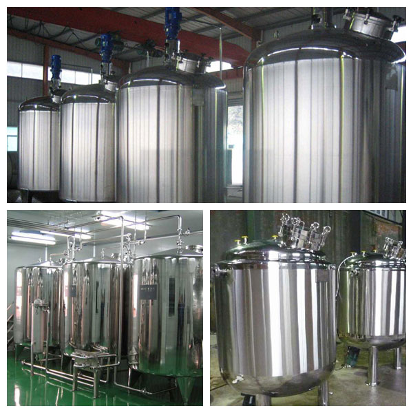 不銹鋼儲罐設(shè)備分缸體、缸蓋、進料口、出料口,均由進口不銹耐酸鋼304或316制成,罐體采用立式或臥式單層或雙層結(jié)構(gòu),并根據(jù)用戶要求充填保溫材料,按GMP技術(shù)條件進行,缸體內(nèi)拋光,外部采用鏡面板或磨砂板保溫。頂部開設(shè)進水口、回流口、消毒口、清洗口、人孔并安裝空氣呼吸器, 且可與管道連接,便于連續(xù)進各種配料,缸底為錐度,出料口便于放料。